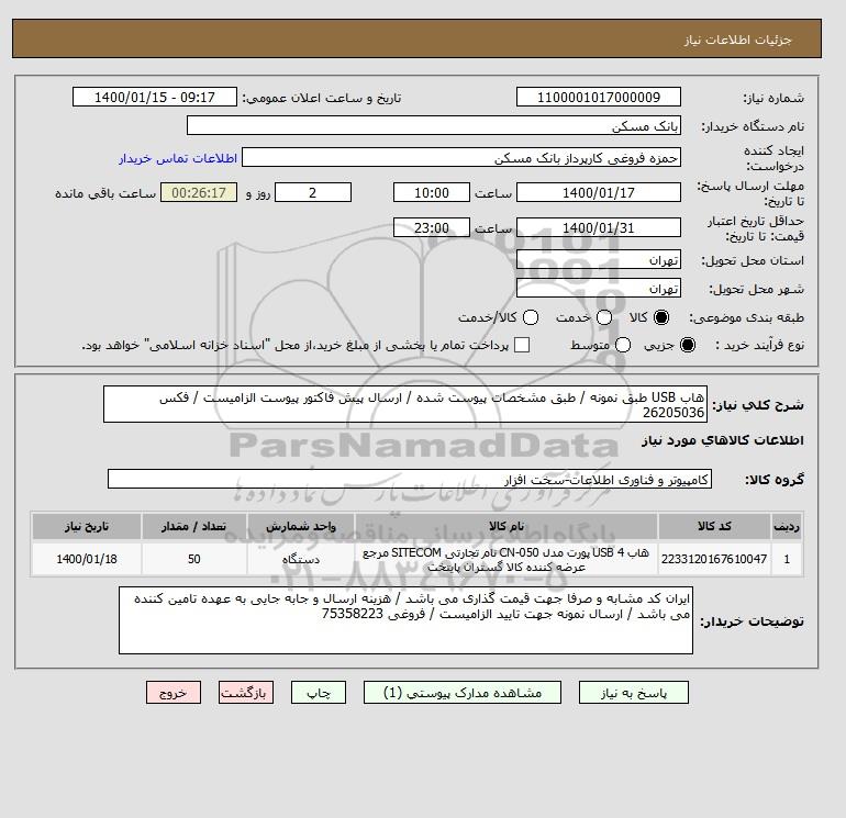 شرح کلی نیاز: هاب USB طبق نمونه / طبق مشخصات پیوست شده / ارسال پیش فاکتور پیوست الزامیست / فکس 26205036