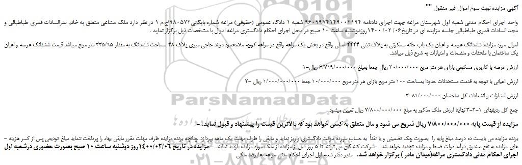 "آگهی مزایده نوبت سوم اموال غیر منقول "