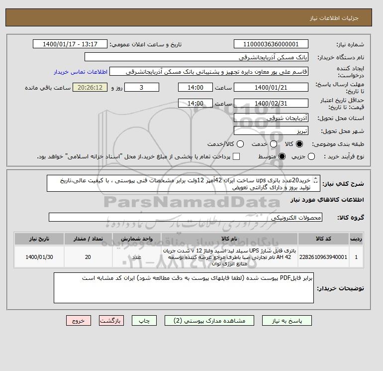 نام دستگاه خریدار:بانک مسکن آذربایجانشرقی