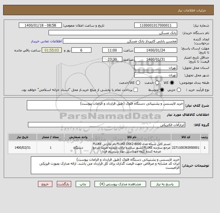 شرح کلی نیاز: خرید لایسنس و پشتیبانی دستگاه فلوک (طبق قرارداد و الزامات پیوست)