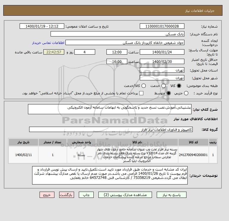 شرح کلی نیاز: پشتیبانی،آموزش،نصب نسخ جدید و پاسخگویی به ابهامات سامانه آزمون الکترونیکی
