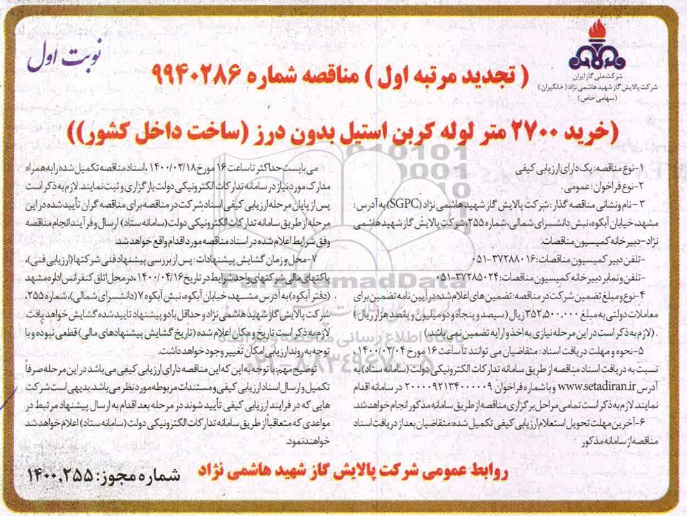 تجدید مرتبه اول مناقصه شماره 9940286 نوبت اول ؟