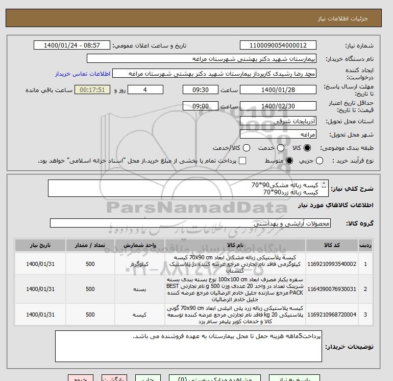 نام دستگاه خریدار:بیمارستان شهید دکتر بهشتی شهرستان مراغه