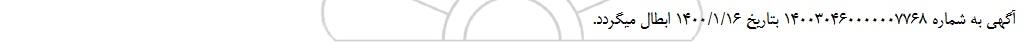 آگهی به شماره 140030460000007768 بتاریخ 1400/1/16 ابطال میگردد.