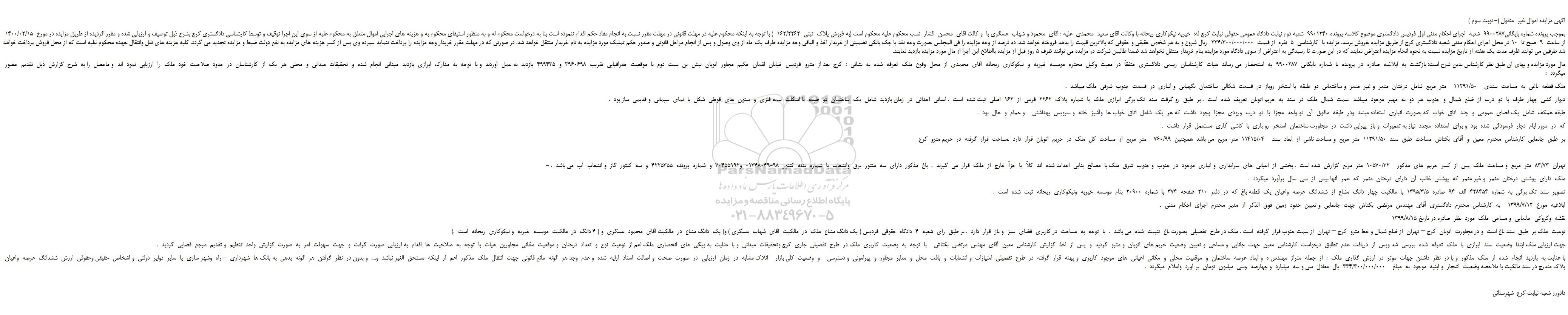 اگهی مزایده اموال غیر منقول (- نوبت سوم )