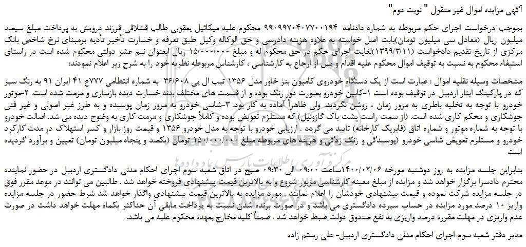 شعبه صادر کننده:شعبه سوم اجرای احکام مدنی دادگستری شهرستان اردبیل