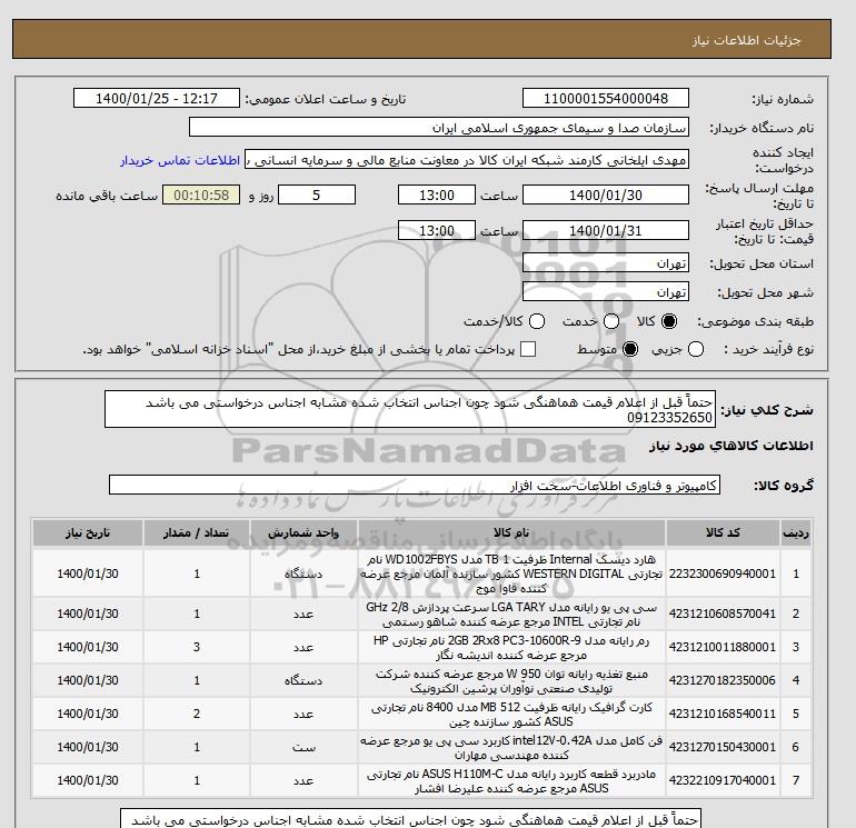 نام دستگاه خریدار:سازمان صدا و سیمای جمهوری اسلامی ایران