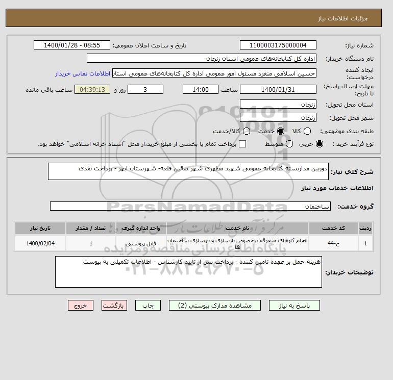 نام دستگاه خریدار:اداره کل کتابخانه های عمومی استان زنجان