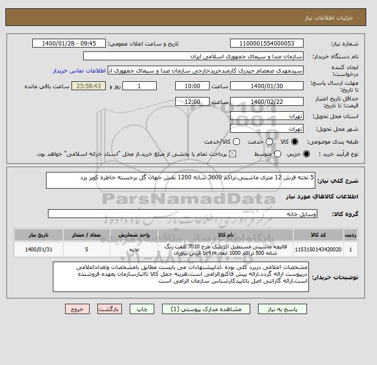 نام دستگاه خریدار:سازمان صدا و سیمای جمهوری اسلامی ایران