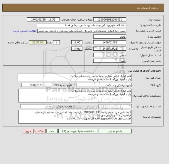 مشخصات کالای مورد نیاز: قلم کوتری ایرانی هزارعددمارک فارمد یا داده گستران دنا