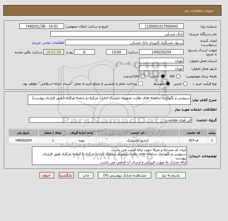 سرویس و نگهداری سامانه های نظارت تصویری دیجیتال ادارات مرکزی و شعبه مرکزی طبق قرارداد پیوست