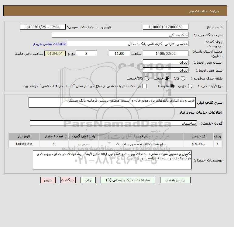 استعلام خرید و راه اندازی تابلوهای برق موتورخانه و استخر مجتمع پردیس فرمانیه بانک مسکن, استعلام خرید و راه اندازی تابلوهای برق موتورخانه و استخر مجتمع پردیس فرمانیه بانک مسکن