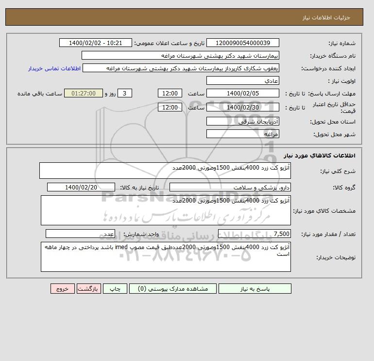 نام دستگاه خریدار:بیمارستان شهید دکتر بهشتی شهرستان مراغه
