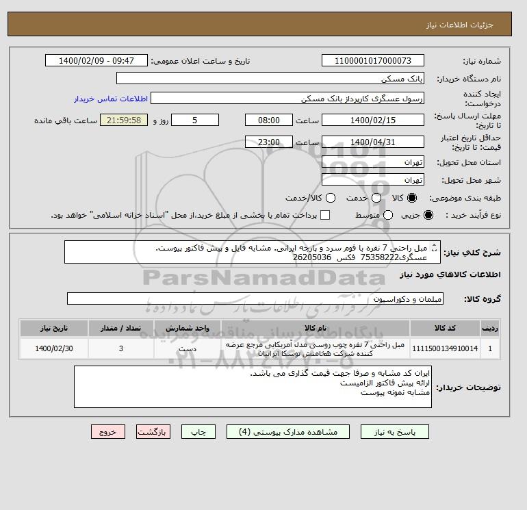 شرح کلی نیاز: مبل راحتی 7 نفره با فوم سرد و پارچه ایرانی. مشابه فایل و پیش فاکتور پیوست.