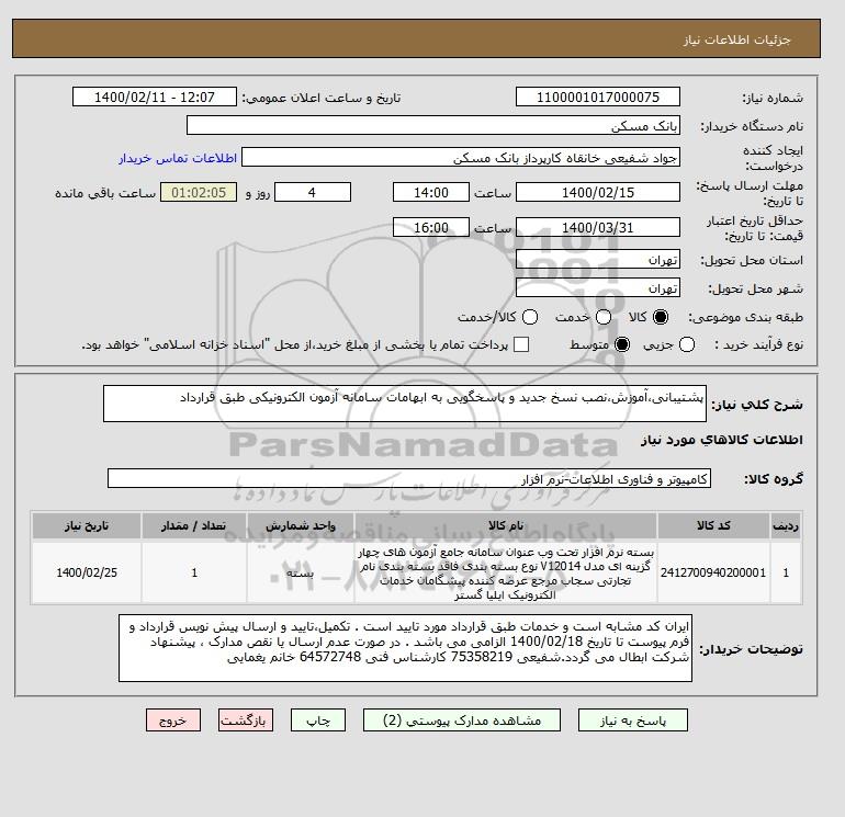 استعلام پشتیبانی،آموزش،نصب نسخ جدید و پاسخگویی به ابهامات سامانه آزمون الکترونیکی طبق قرارداد, استعلام پشتیبانی،آموزش،نصب نسخ جدید و پاسخگویی به ابهامات سامانه آزمون الکترونیکی طبق قرارداد