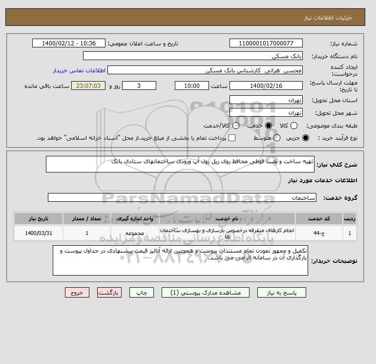 شرح کلی نیاز: تهیه ساخت و نصب قوطی محافظ روی ریل رول آپ ورودی ساختمانهای ستادی بانک