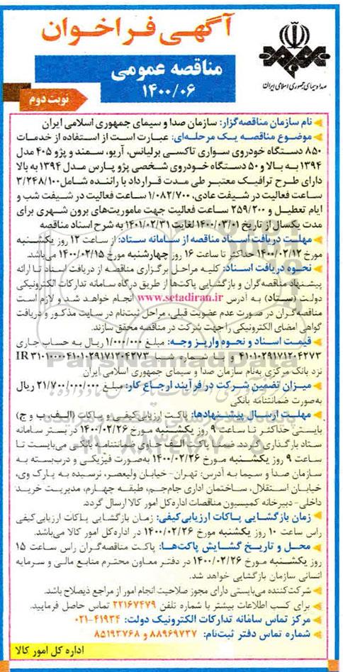 نام سازمان مناقصه گزار: سازمان صدا و سیمای جمهوری اسلامی ایران