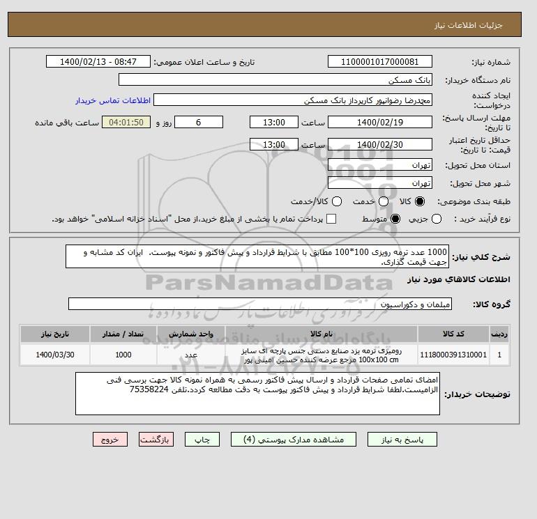 استعلام 1000 عدد ترمه رویزی 100*100 مطابق با شرایط قرارداد و پیش فاکتور و نمونه پیوست. ایران کد مشابه و جهت قیمت گذاری., استعلام 1000 عدد ترمه رویزی 100*100 مطابق با شرایط قرارداد و پیش فاکتور و نمونه پیوست. ایران کد مشابه و جهت قیمت گذاری.