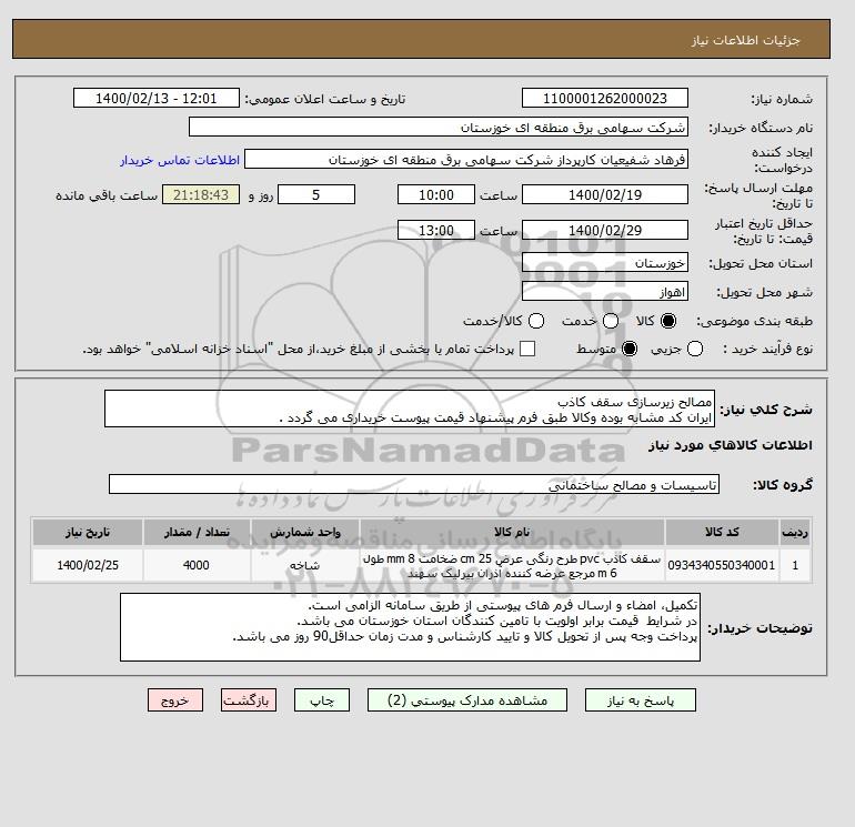 نام دستگاه خریدار:شرکت سهامی برق منطقه ای خوزستان