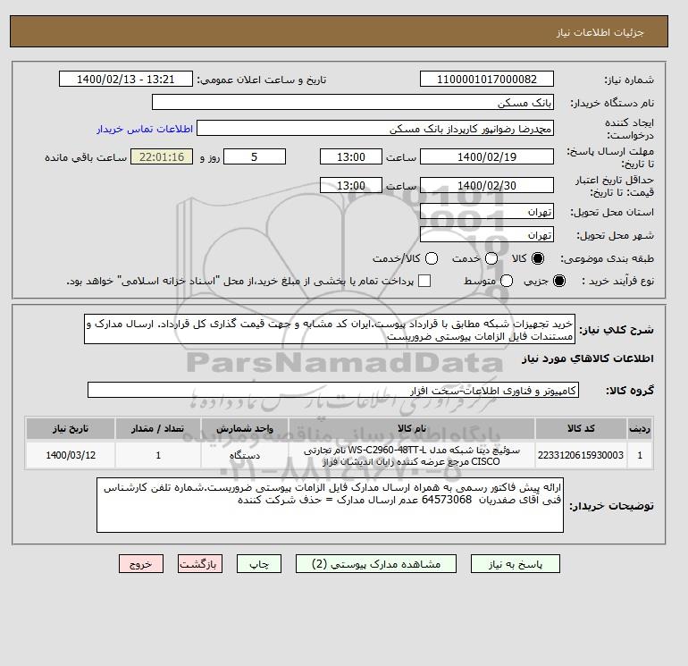 استعلام خرید تجهیزات شبکه مطابق با قرارداد پیوست.ایران کد مشابه و جهت قیمت گذاری کل قرارداد. ارسال مدارک و مستندات فایل الزامات پیوستی ضروریست, استعلام خرید تجهیزات شبکه مطابق با قرارداد پیوست.ایران کد مشابه و جهت قیمت گذاری کل قرارداد. ارسال مدارک و مستندات فایل الزامات پیوستی ضروریست