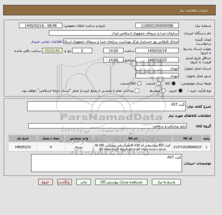 1 2137110228060023 کیت AST بیوشیمی کد D-130 بطری پلی پروپیلنی 100 ml مرجع سازنده درمان کاو مرجع عرضه کننده درمان کاو بسته 6 1400/02/22