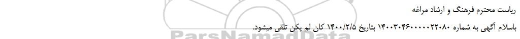 ریاست محترم فرهنگ و ارشاد مراغه
