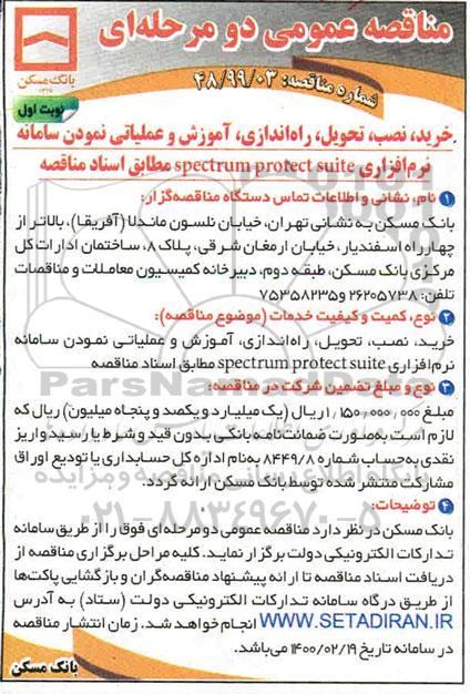 خرید، نصب، تحویل، راه اندازی، آموزش و عملیاتی نمودن سامانه نرم افزاری SPECTRUM PROTECT SUITE مطابق اسناد مناقصه