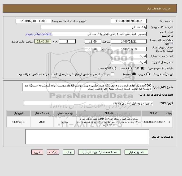 شرح کلی نیاز: 7000عدد پک لوازم التحریربادرج آرم بانک طبق عکس و پیش نویس قرارداد پیوست(ایران کدمشابه است)بازدید از نمونه ها الزامی است-ارسال نمونه کالا الزامی است