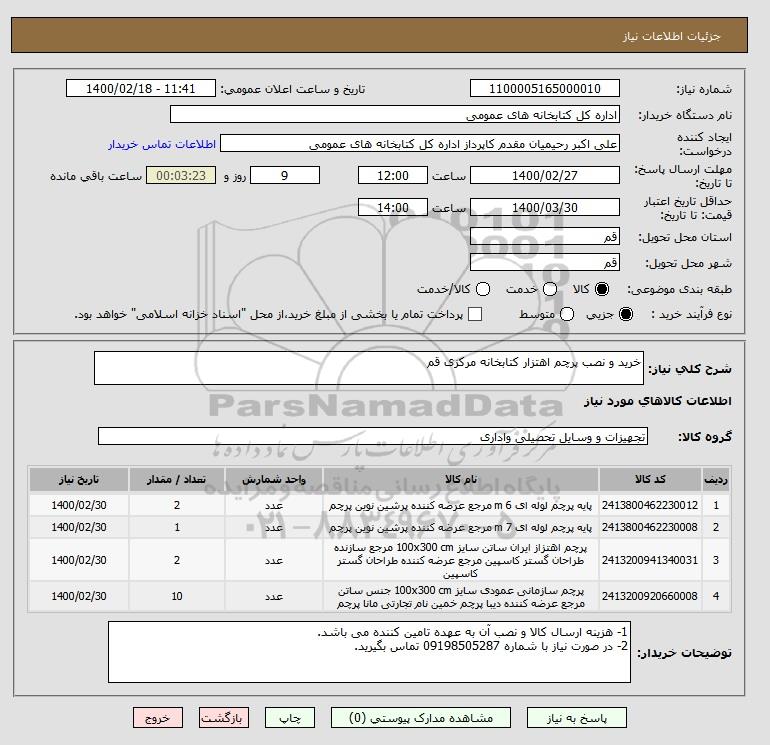 شرح کلی نیاز: خرید و نصب پرچم اهتزار کتابخانه مرکزی قم