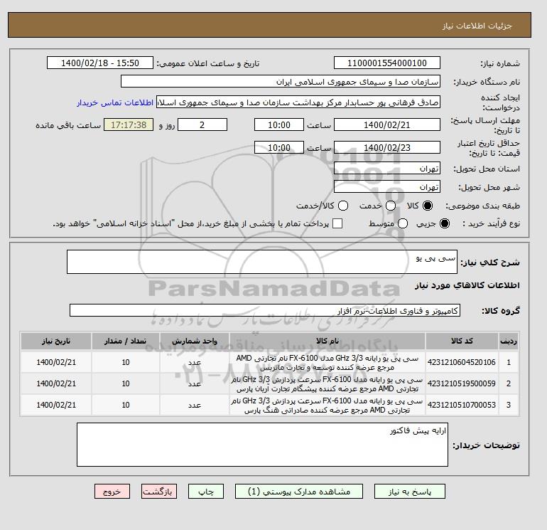 نام دستگاه خریدار:سازمان صدا و سیمای جمهوری اسلامی ایران