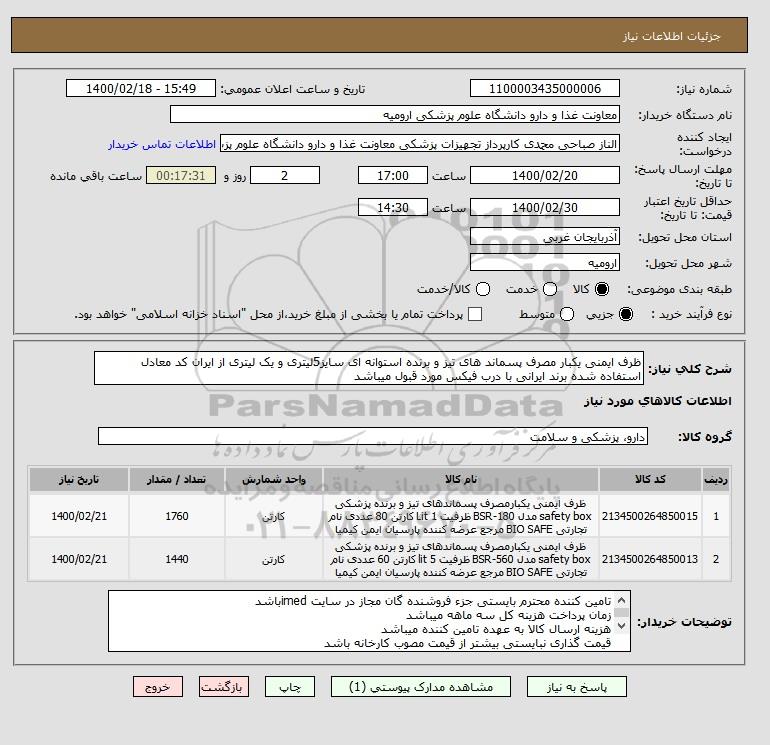 نام دستگاه خریدار:معاونت غذا و دارو دانشگاه علوم پزشکی ارومیه