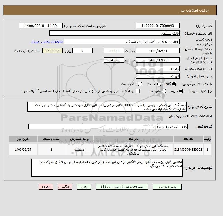شرح کلی نیاز: دستگاه کاور کفش حرارتی با ظرفیت 1000 کاور در هر رول مطابق فایل پیوستی با گارانتی معتبر، ایران کد اشاره شده مشابه می باشد