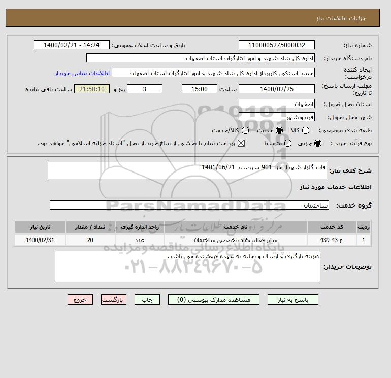 شرح کلی نیاز: قاب گلزار شهدا اخزا 901 سررسید 1401/06/21