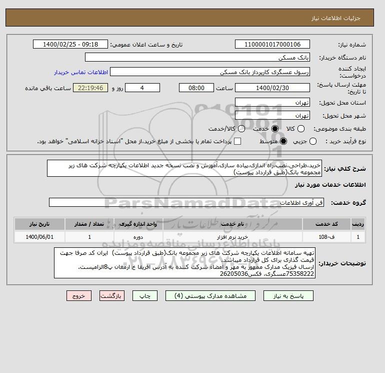 نام دستگاه خریدار:بانک مسکن