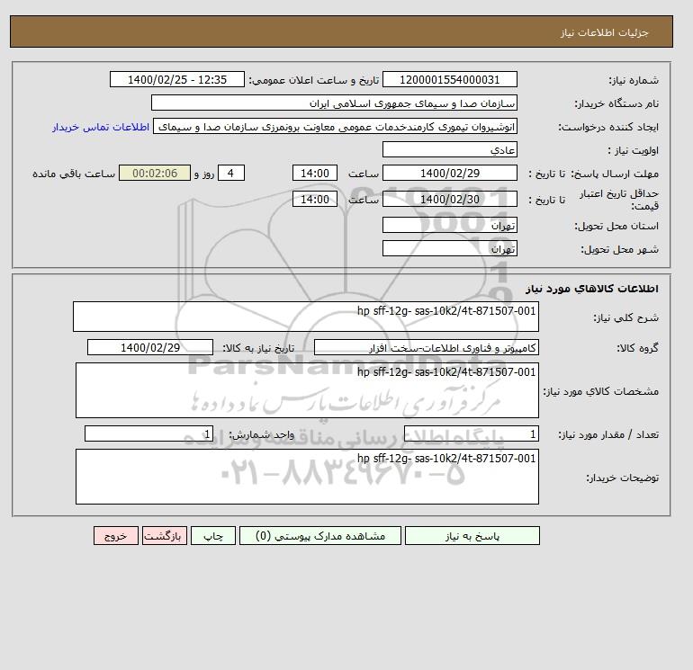 شرح کلی نیاز: hp sff-12g- sas-10k2/4t-871507-001