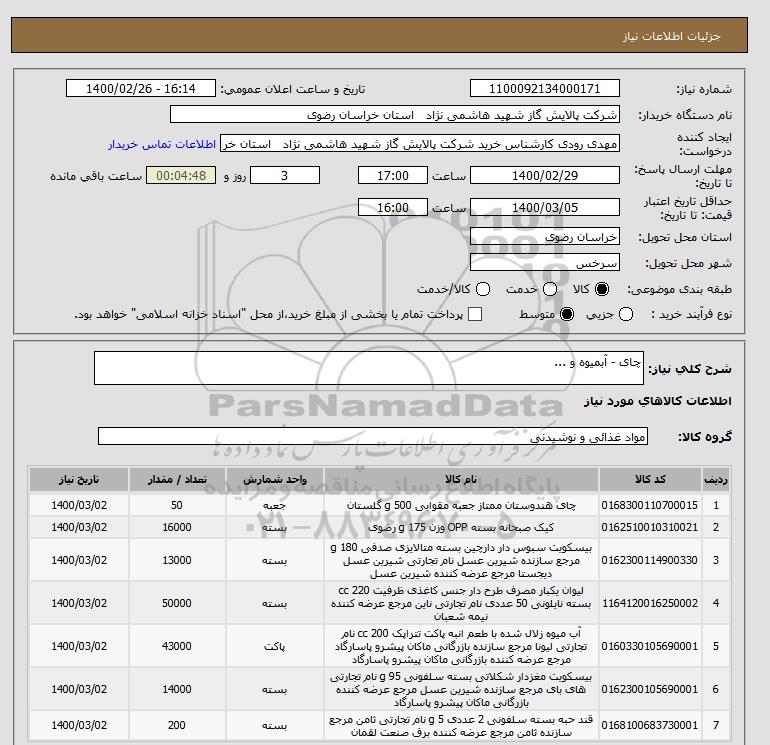 نام دستگاه خریدار:شرکت پالایش گاز شهید هاشمی نژاد استان خراسان رضوی