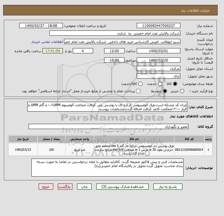 نام دستگاه خریدار:شرکت پالایش نفت امام خمینی ره شازند