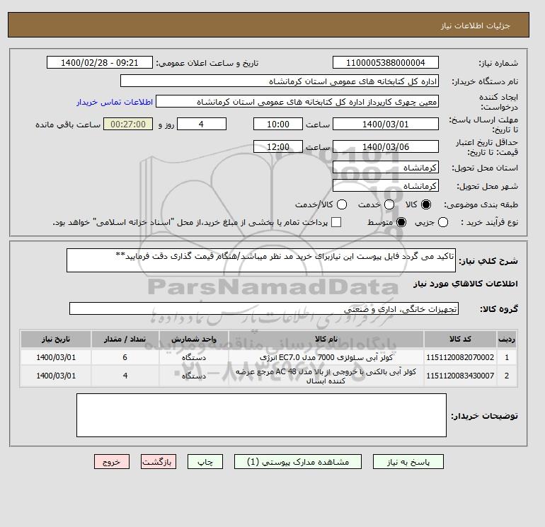 نام دستگاه خریدار:اداره کل کتابخانه های عمومی استان کرمانشاه