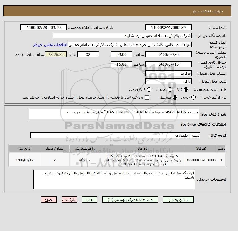 نام دستگاه خریدار:شرکت پالایش نفت امام خمینی ره شازند