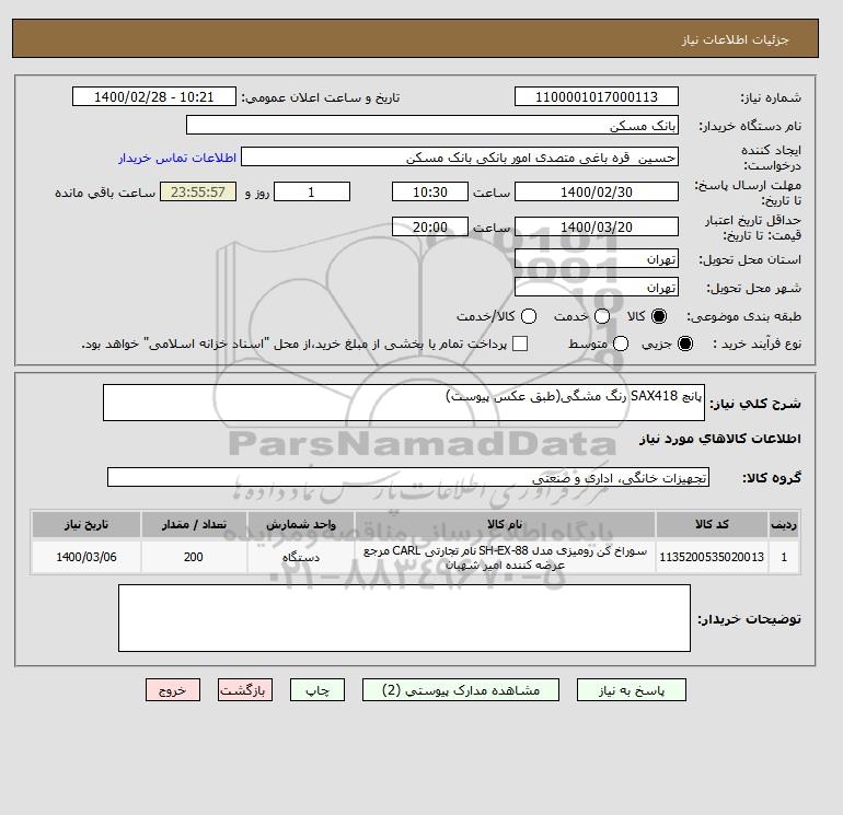 شرح کلی نیاز: پانچ SAX418 رنگ مشگی(طبق عکس پیوست)