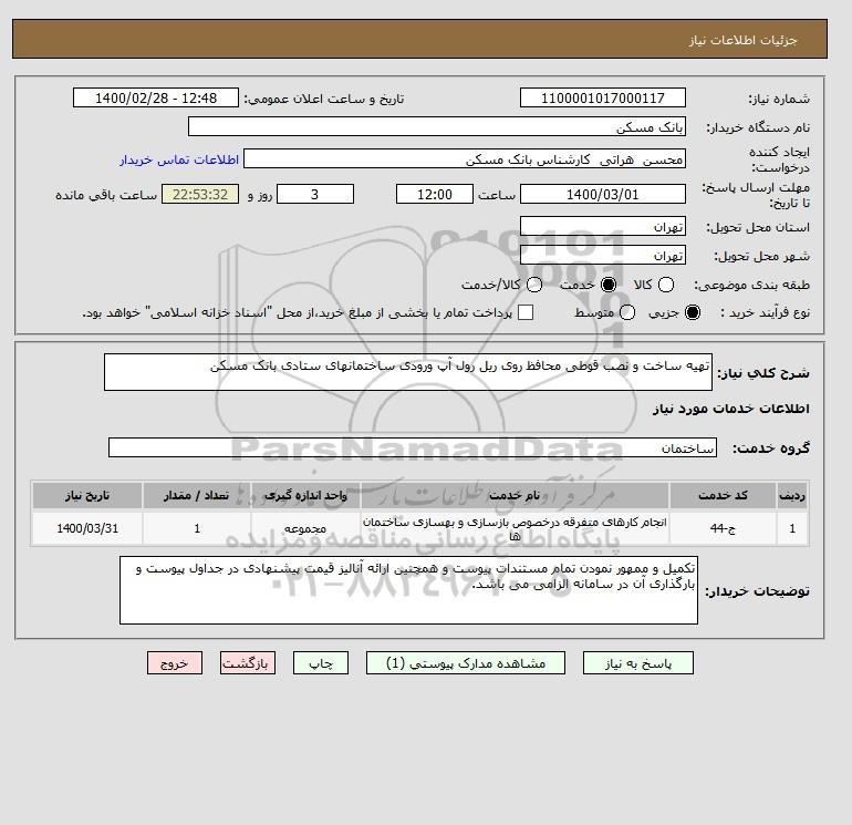 استعلام تهیه ساخت و نصب قوطی محافظ روی ریل رول آپ ورودی ساختمانهای ستادی بانک مسکن, استعلام تهیه ساخت و نصب قوطی محافظ روی ریل رول آپ ورودی ساختمانهای ستادی بانک مسکن