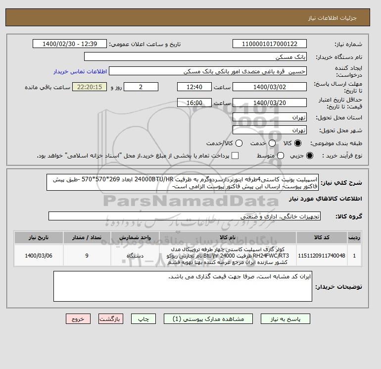 استعلام اسپیلیت یونیت کاستی4طرفه اینورتردارسردوگرم به ظرفیت 24000BTU/HR ابعاد 269*570*570 -طبق پیش فاکتور پیوست- ارسال این پیش فاکتور پیوست الزامی است-, استعلام اسپیلیت یونیت کاستی4طرفه اینورتردارسردوگرم به ظرفیت 24000BTU/HR ابعاد 269*570*570 -طبق پیش فاکتور پیوست- ارسال این پیش فاکتور پیوست الزامی است-