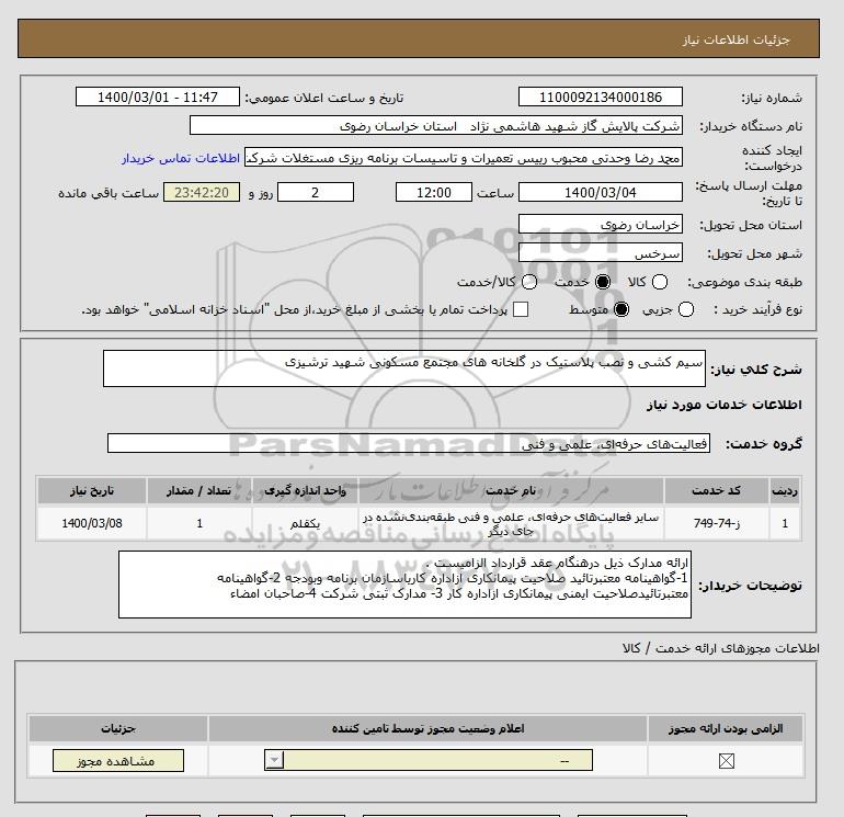 نام دستگاه خریدار:شرکت پالایش گاز شهید هاشمی نژاد استان خراسان رضوی