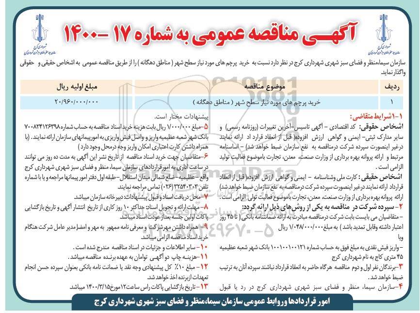 برای شرکت در مناقصه حتما از تصویر آگهی در سایت پارس نماد داده ها استفاده نمایید