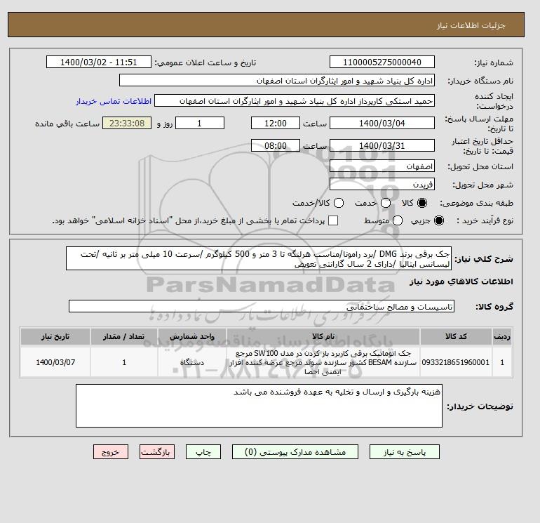 نام دستگاه خریدار:اداره کل بنیاد شهید و امور ایثارگران استان اصفهان