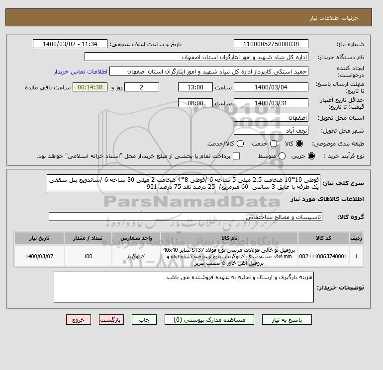 نام دستگاه خریدار:اداره کل بنیاد شهید و امور ایثارگران استان اصفهان