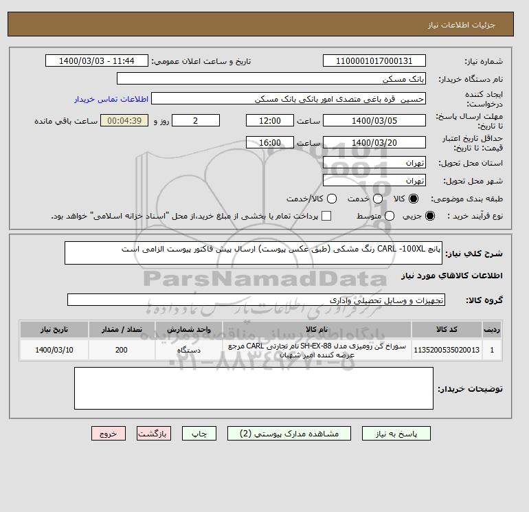 شرح کلی نیاز: پانچ CARL -100XL رنگ مشکی (طبق عکس پیوست) ارسال پیش فاکتور پیوست الزامی است