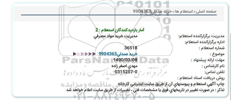 متقاضیان میتوانند با ثبت نام در سامانه مناقصات و مزایدات ایران (پارس نماد) نسبت به مشاهده اسناد استعلام، دریافت اطلاعات تکمیلی، و ثبت پیشنهاد قیمت خود اقدام نمایند.