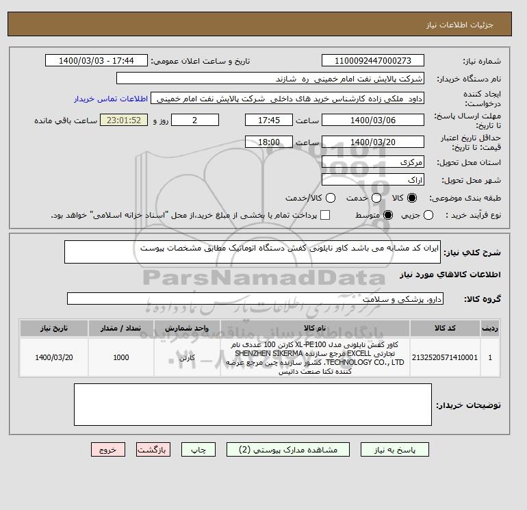 استعلام ایران کد مشابه می باشد کاور نایلونی کفش دستگاه اتوماتیک مطابق مشخصات پیوست, استعلام ایران کد مشابه می باشد کاور نایلونی کفش دستگاه اتوماتیک مطابق مشخصات پیوست