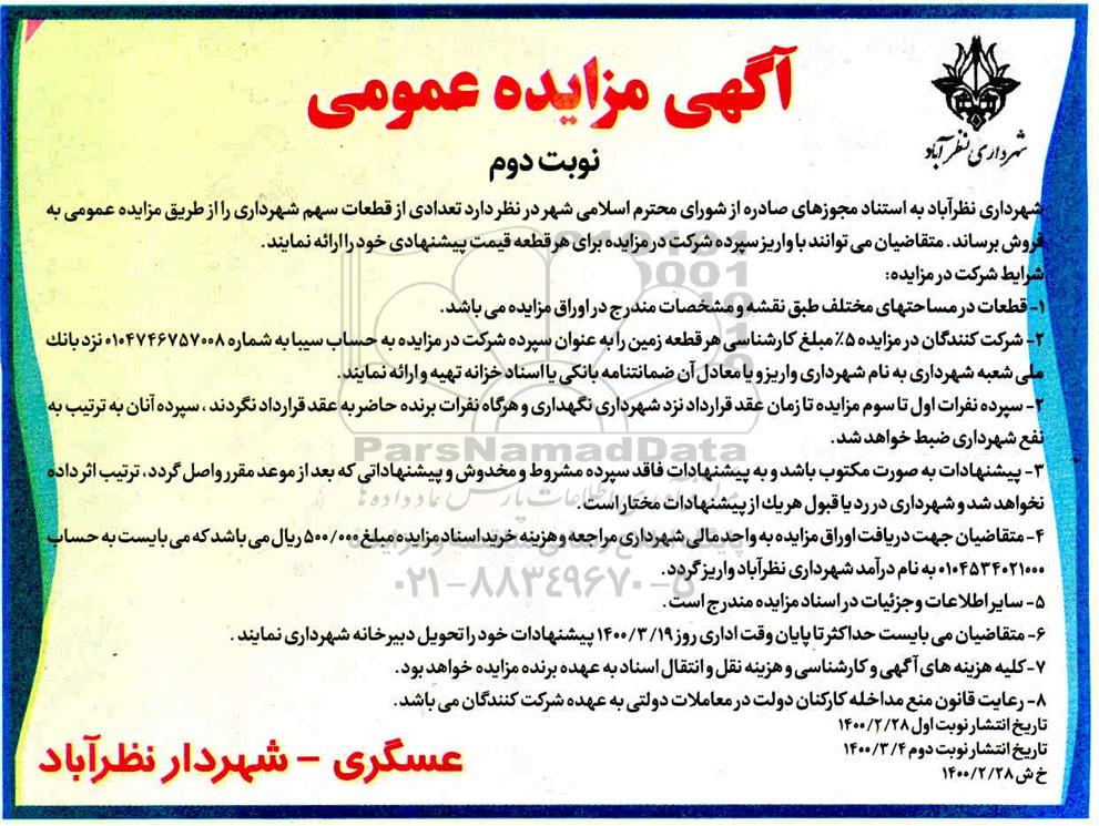 مزایده فروش تعدادی از قطعات سهم شهرداری نوبت دوم